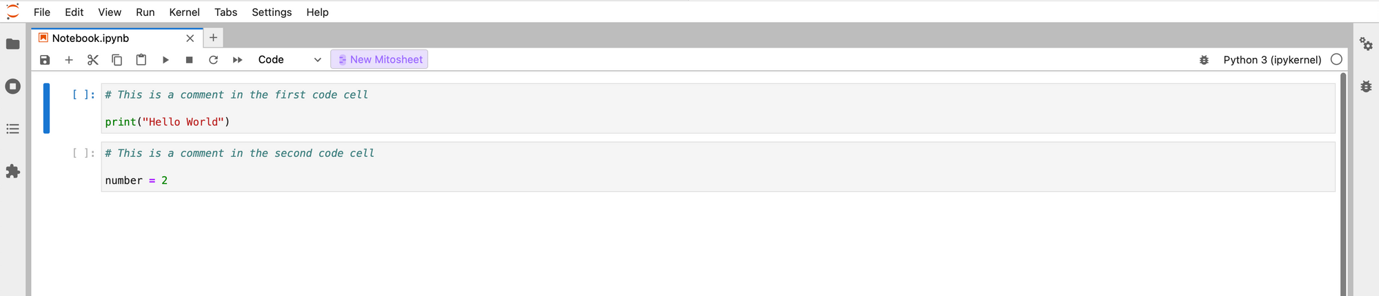 Jupyter notebooks are the go-to tool for Python data analytics. A notebook is where you'll write code and access the Mito spreadsheet.