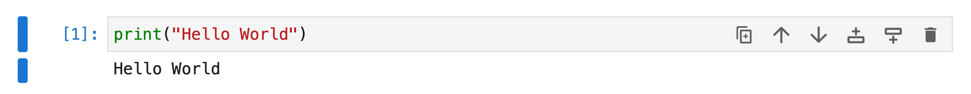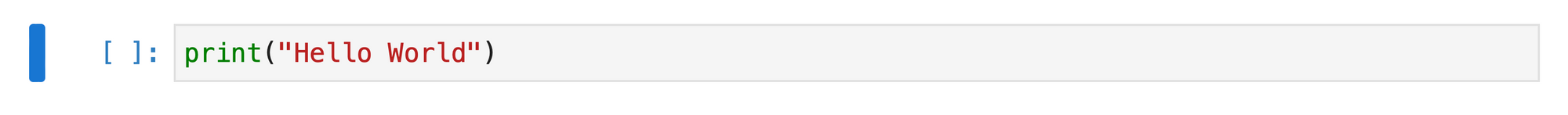 - The words “Hello World” should be printed below the code cell