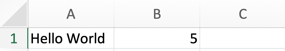 Excel supports several types of literals. If we write ="Hello World" in A1 and =5 in A2, we’ll see the words "Hello World" are left aligned whereas the number 5 is right aligned. That’s because Excel knows that "Hello World" is text and 5 is a number.